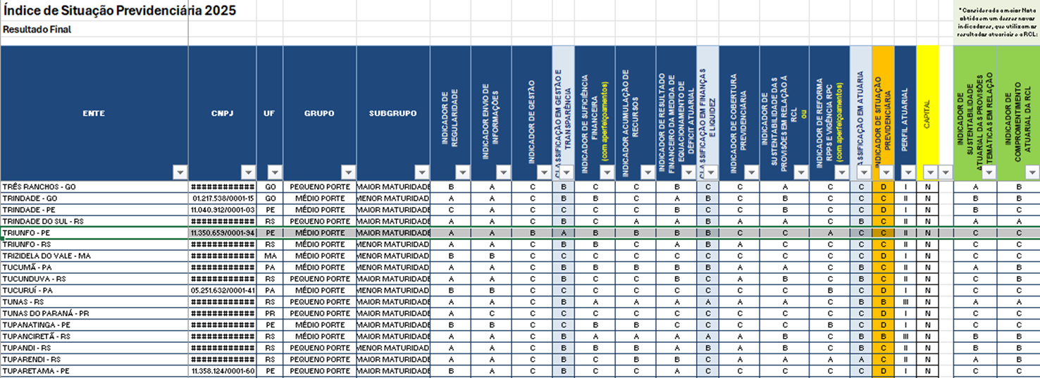 Consulte aqui o Indicador de Situação Previdenciária, em 2025 do TRIUNFO PREV: